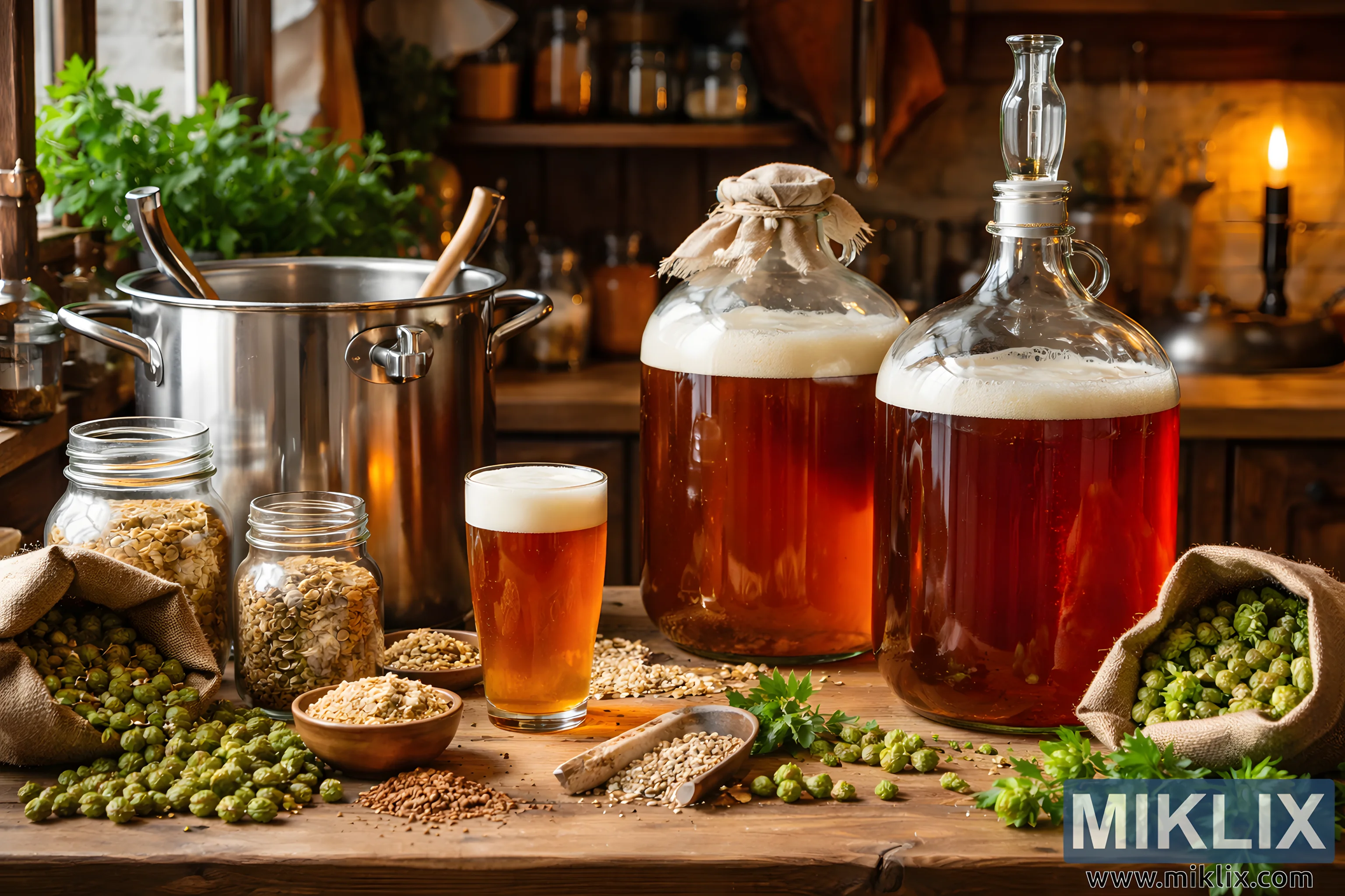 Artisanal Ale Brewing and Fermentation on a Rustic Countertop