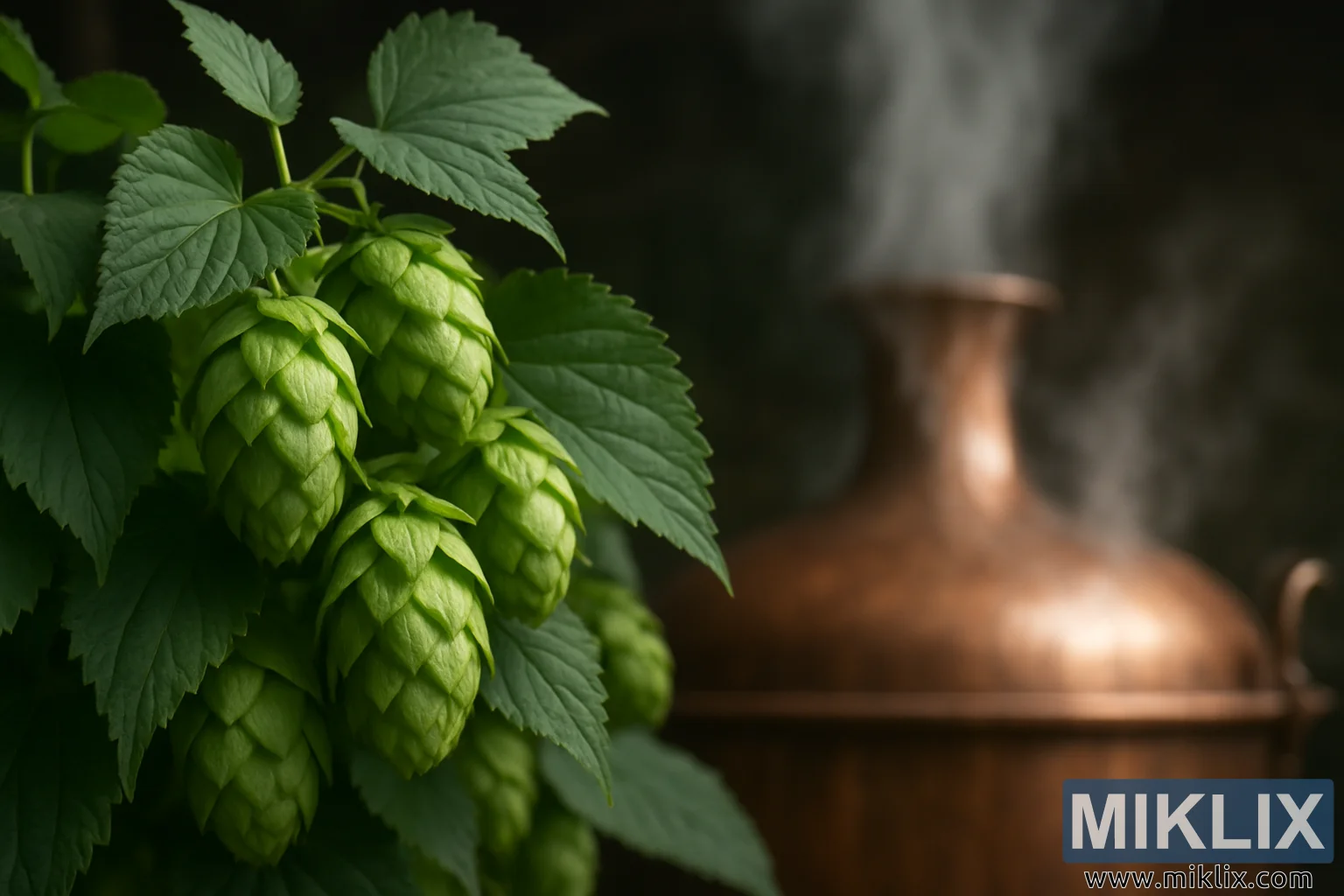 படத்தின் அமைப்பு நெருக்கத்தை அளவோடு கவனமாக சமநிலைப்படுத்துகிறது. ஹாப்ஸின் நெருக்கமான கவனம் பார்வையாளரை அவற்றின் இயல்பான நுணுக்கத்தைப் பாராட்ட அழைக்கிறது, அதே நேரத்தில் பின்னணியில் கெட்டிலின் தற்செயலான இருப்பு அவற்றை பீர் தயாரிப்பின் பரந்த கதைக்குள் வைக்கிறது. செப்பு பாத்திரம், கவனம் செலுத்துவதில் மென்மையாக இருந்தாலும், உடல் வெப்பத்தையும் குறியீட்டு முக்கியத்துவத்தையும் வெளிப்படுத்துகிறது, மாற்றம் நிகழும் பாத்திரமாக செயல்படுகிறது. பயன்பாட்டினால் இடங்களில் இருண்ட அதன் மேற்பரப்பு, எண்ணற்ற கஷாயங்களின் பரம்பரையைப் பற்றி பேசுகிறது, ஒவ்வொரு தொகுதியும் கஷாயம் தயாரிப்பாளருக்கும் மூலப்பொருளுக்கும் இடையிலான ஒரு பழங்கால உரையாடலின் தொடர்ச்சியாகும்.