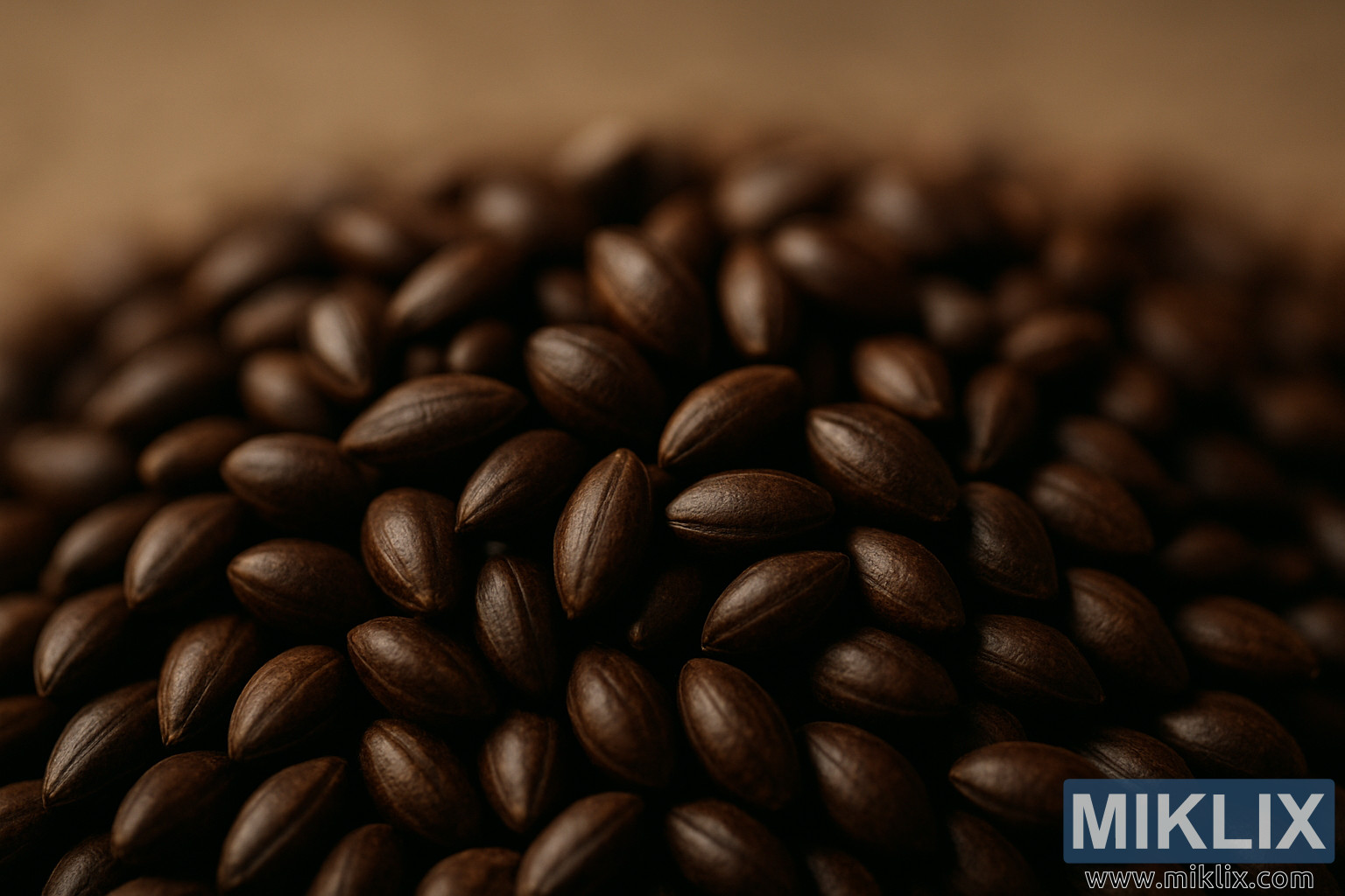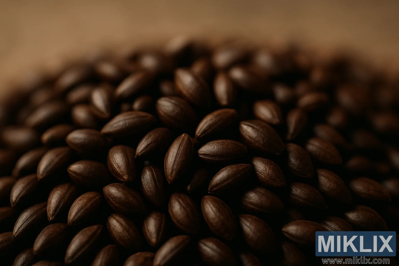 Загальний настрій зображення – це кулінарна точність і тиха шана. Це схоже на мить, застиглу в часі, де сирий інгредієнт шанується не лише за його корисність, а й за його естетичні та сенсорні якості. Зерна виглядають майже як коштовності під м’яким освітленням, їхні темні відтінки варіюються від насиченого каштанового до майже чорного, з випадковими бурштиновими відблисками, де світло ловить вигин або край. Це візуальне багатство натякає на складність смаку, яку вони нададуть – нотки темного шоколаду, кави та підсмаженого хліба, нашаровані без різкого укусу, який іноді може додавати лущений солод.