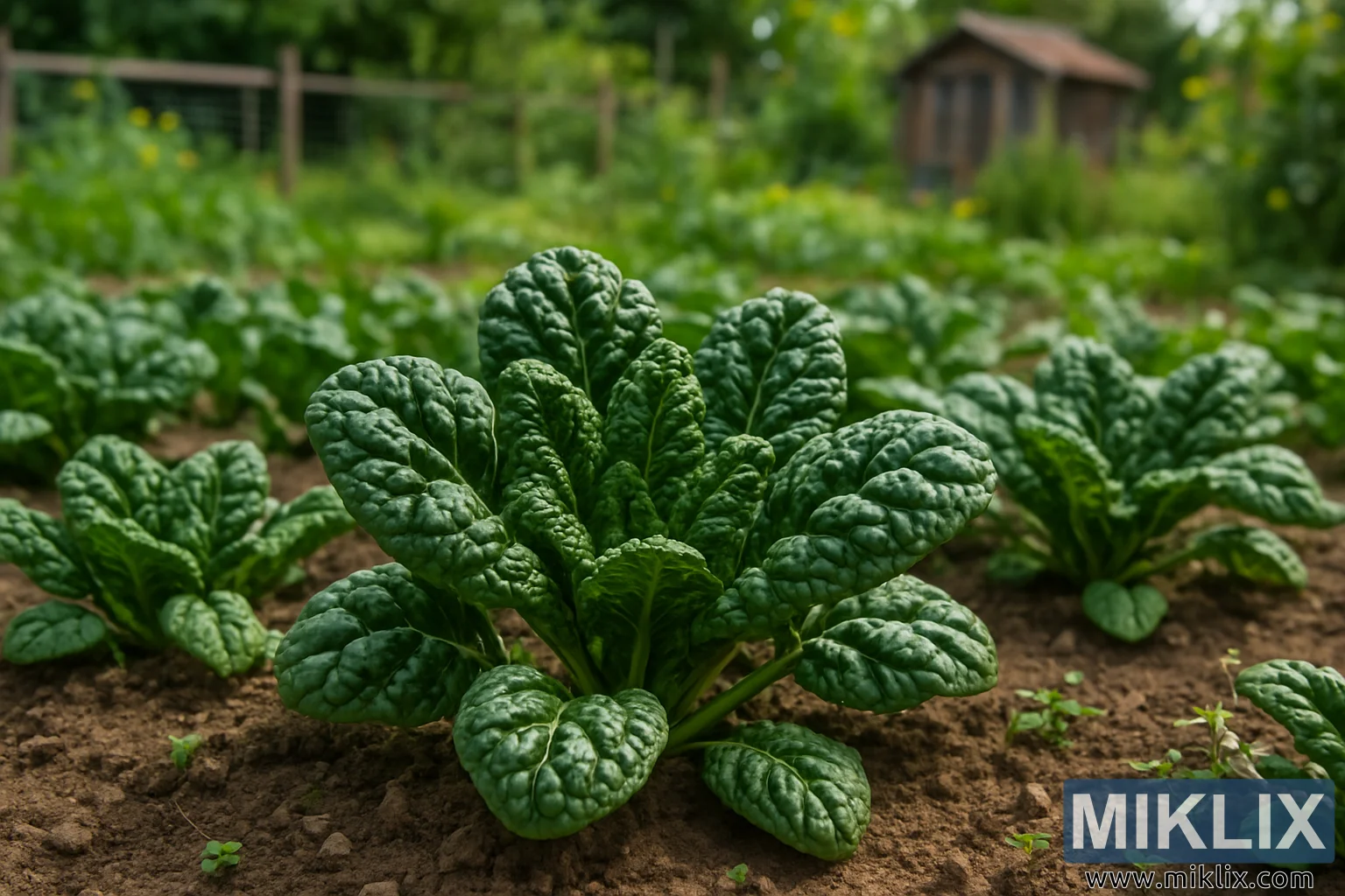 Savoy Spinach Thriving in a Peaceful Home Garden