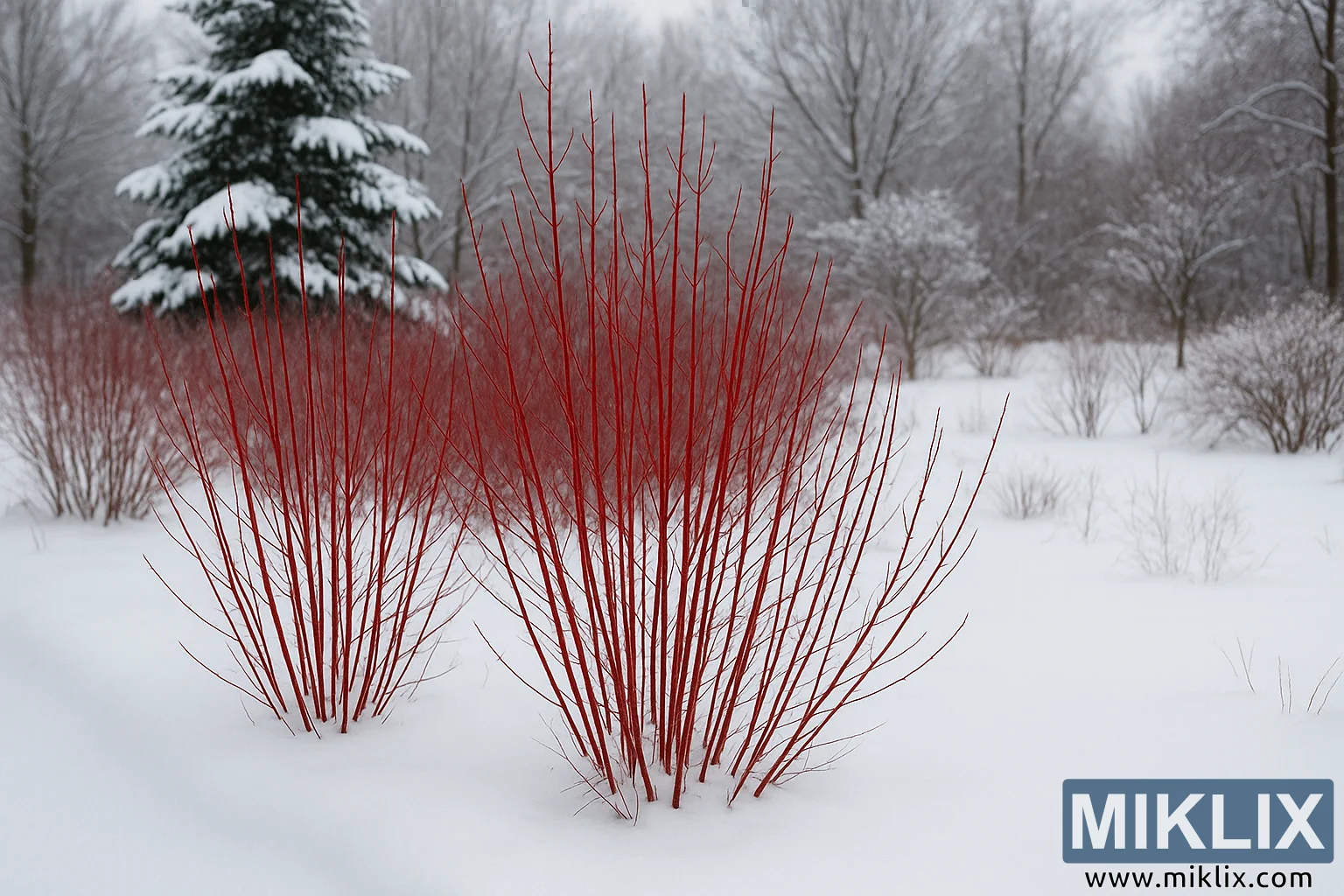 Red Twig Dogwood Enhancing a Serene Winter Landscape