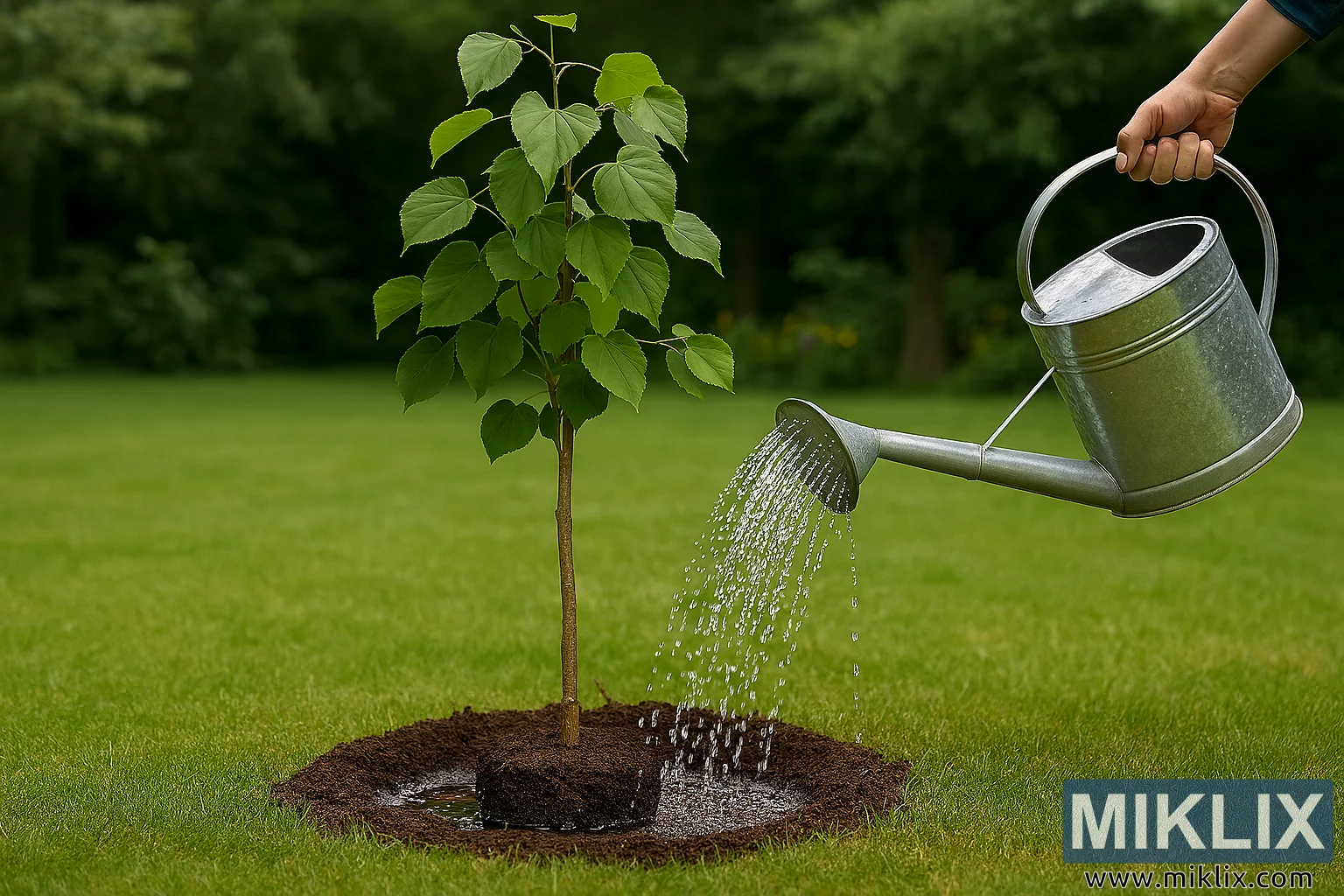 Watering a Young Linden Tree for Drought Resistance