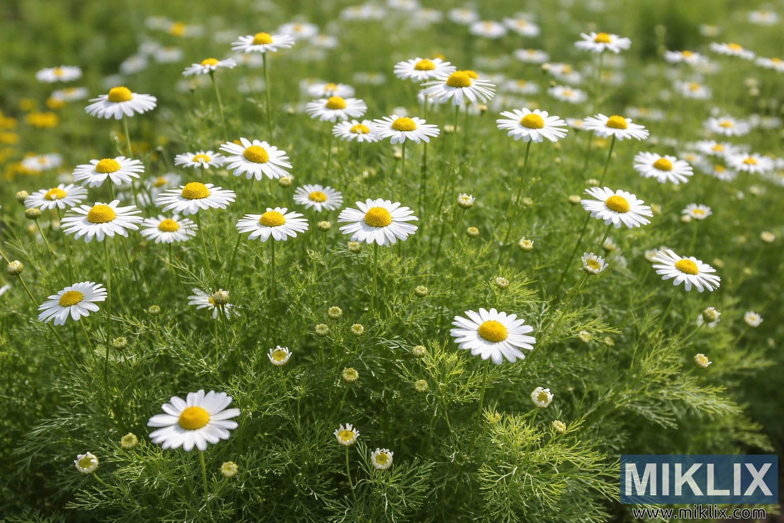 Blooming German Chamomile in a Garden