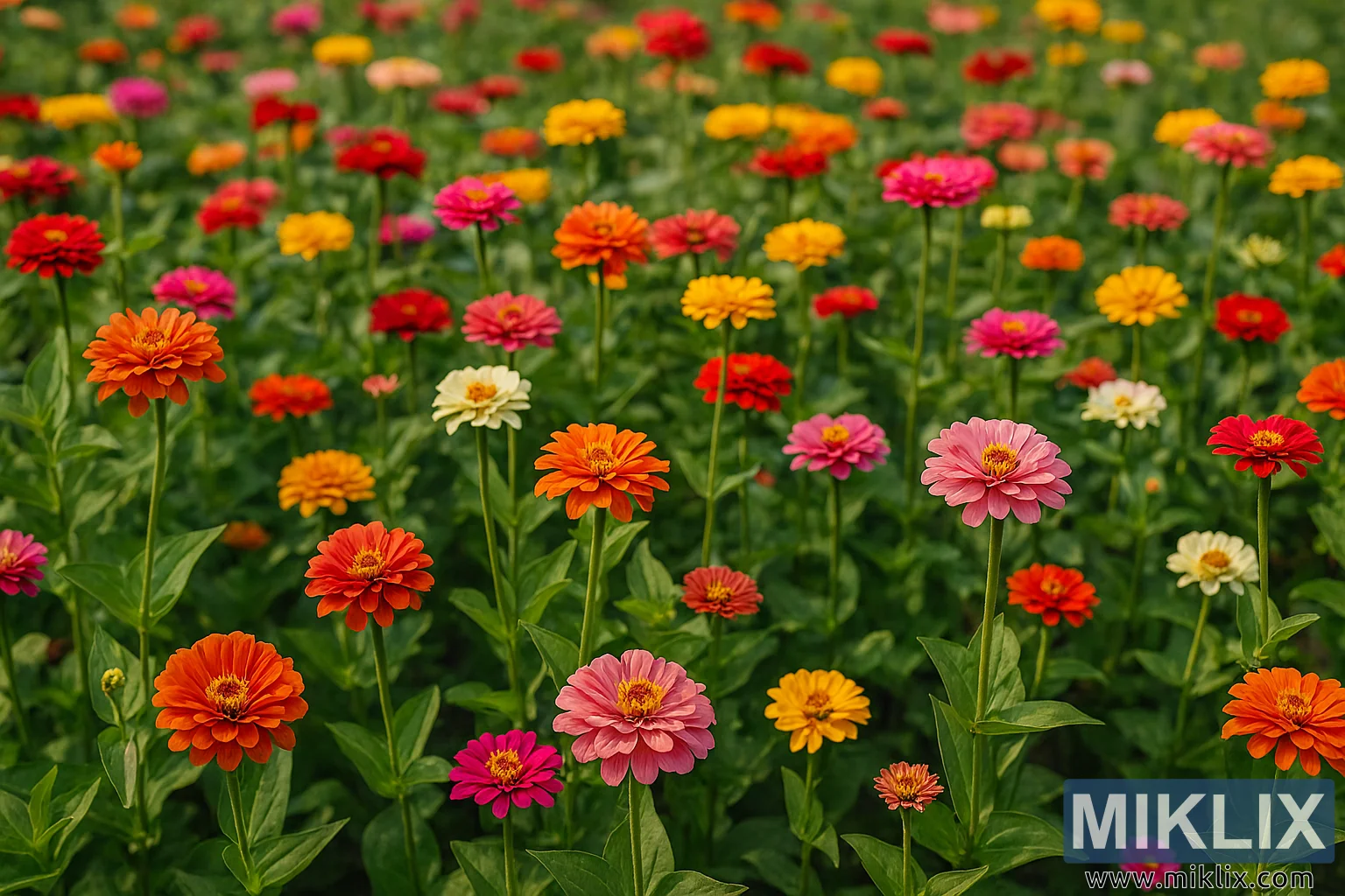 موسم گرما کی خوبصورتی کو مکمل طور پر کھلے ہوئے زنیہ کے پھولوں کی اس وشد زمین کی تزئین کی تصویر کے ساتھ دریافت کریں، جس میں رنگوں اور سرسبز و شاداب ہریالی کی نمائش ہوتی ہے۔