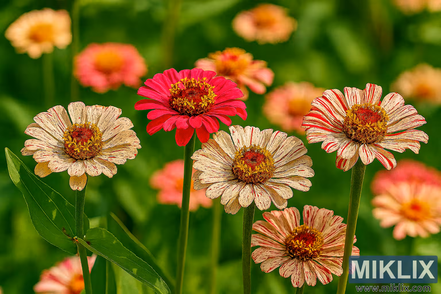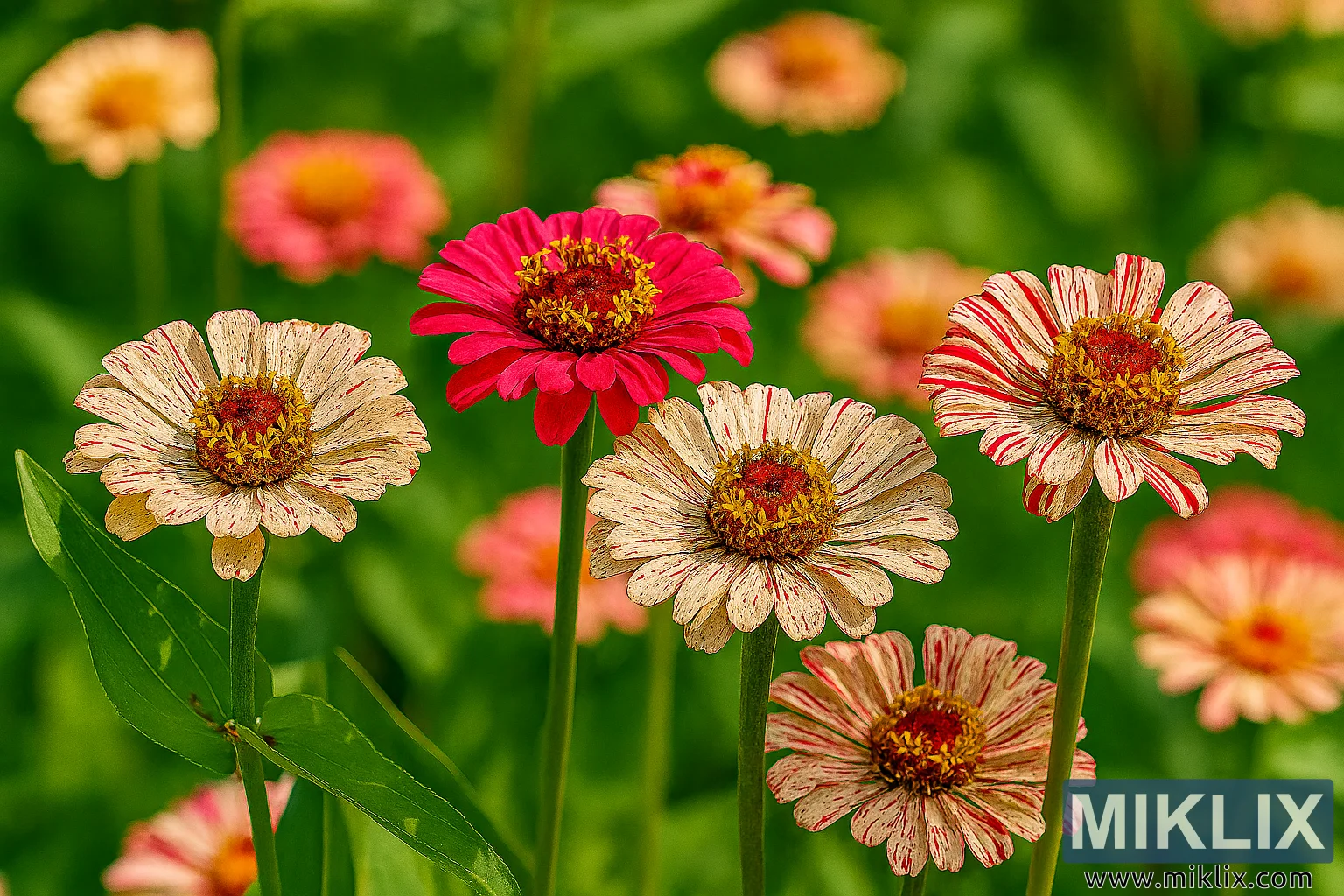 Peppermint Stick Zinnias in Bright Summer Bloom