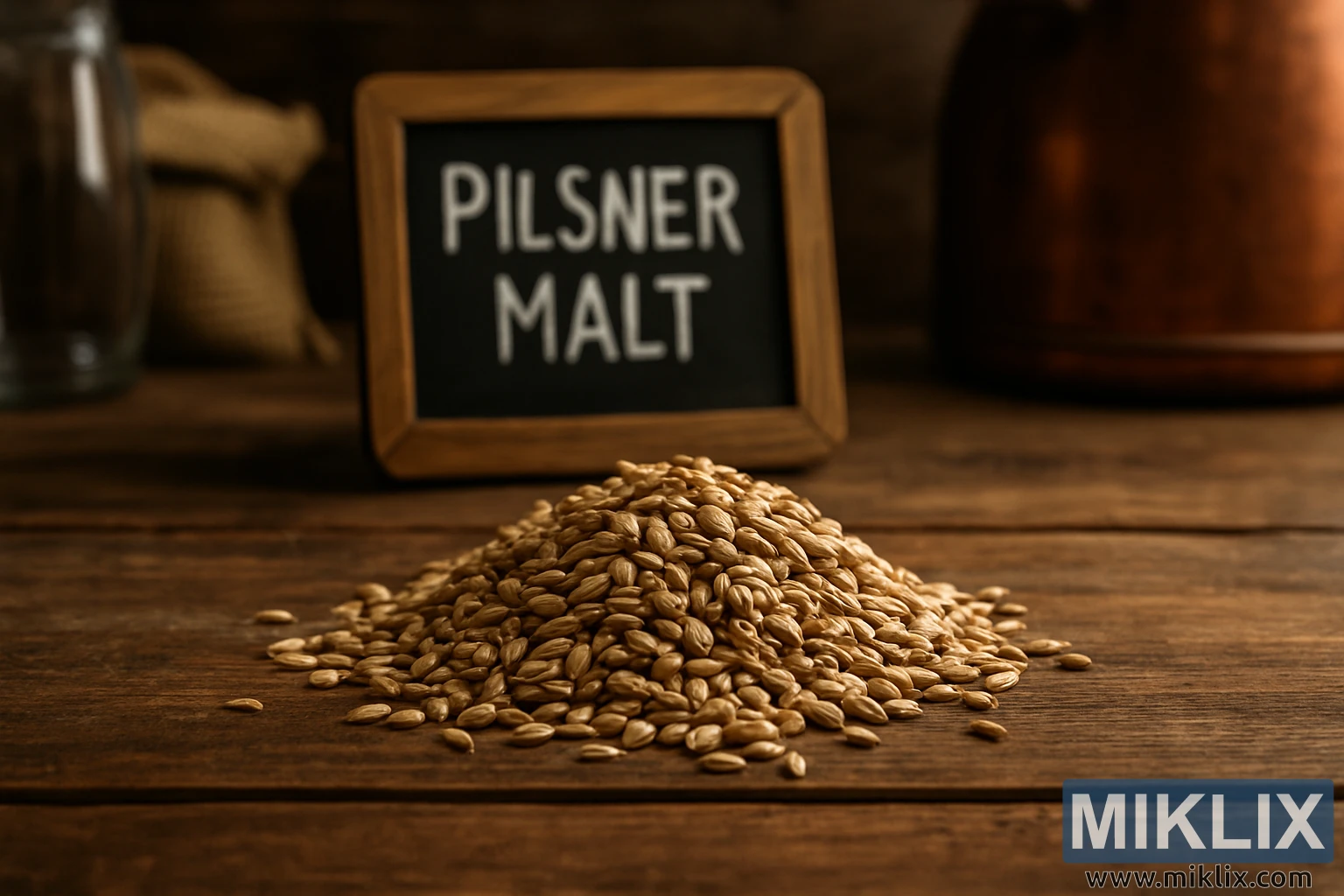 Hình ảnh: Malt Pilsner trong bối cảnh ủ bia tại nhà mộc mạc