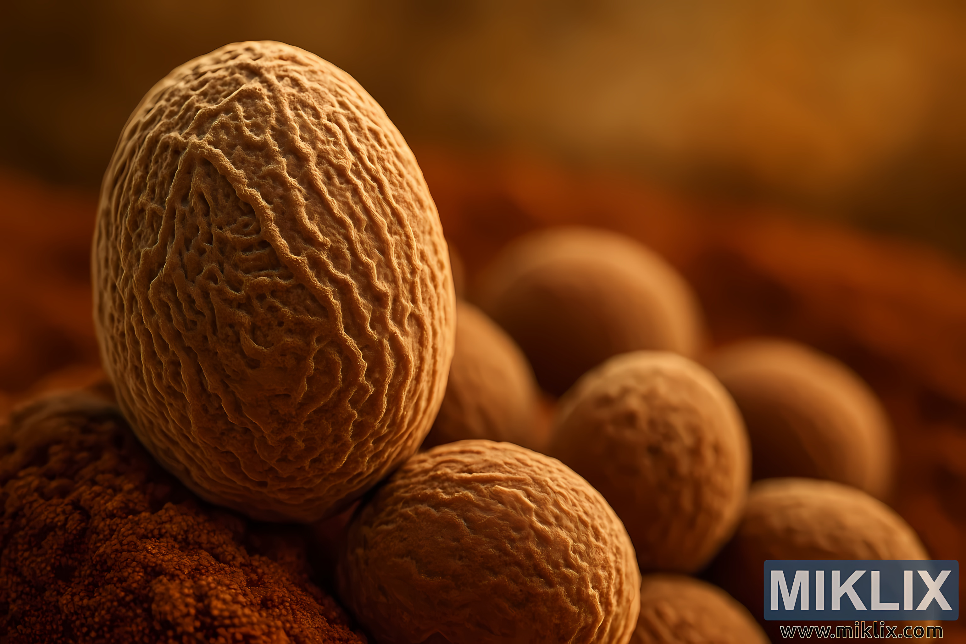 Ánh sáng trong bố cục tự nhiên và ấm áp, lan tỏa từ bên hông các tế bào nấm men, làm nổi bật đường cong và kết cấu của chúng. Những bóng đổ mềm mại đổ xuống các khe rãnh tạo thêm chiều sâu và chiều sâu, trong khi các điểm sáng lấp lánh mờ ảo dọc theo các phần nhô lên của thành tế bào. Sự tương tác giữa ánh sáng và bóng tối này làm tăng cảm nhận về khối lượng và tính chân thực, làm nổi bật sự hiện diện ba chiều của nấm men. Cảm giác như thể người ta có thể đưa tay vào hình ảnh và lăn tế bào trung tâm giữa các đầu ngón tay, kết cấu của nó thật rõ ràng.