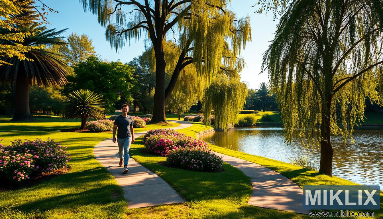 整体氛围不仅在视觉上令人宁静,更在情感上令人心旷神怡。它捕捉到了许多研究证实的精髓——散步,尤其是在绿色自然的空间中,能够提升注意力、激发创意,并增强情绪韧性。在这个场景中,公园不仅仅是一个背景;它成为了散步的积极参与者,为步行者提供清理思绪、恢复活力、重新与自我连接的工具。这幅图像以静谧的视觉呈现,展现了放慢脚步、专注前行、沿着阳光小径一步步找到清晰方向的力量。