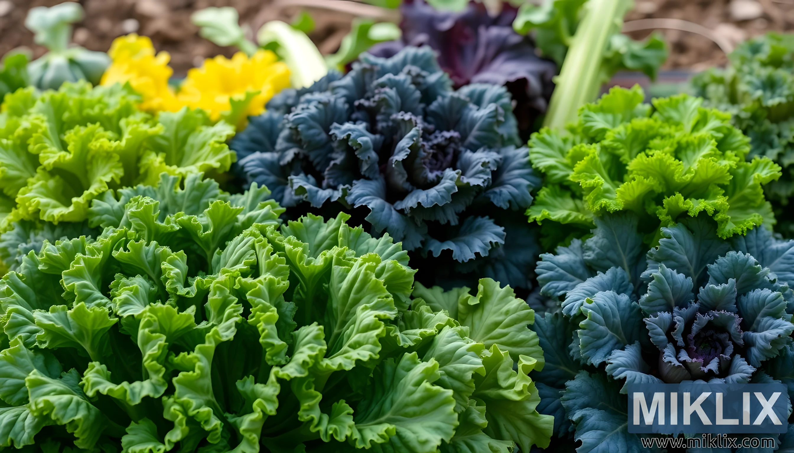 Vibrant Kale Varieties on a Natural Backdrop