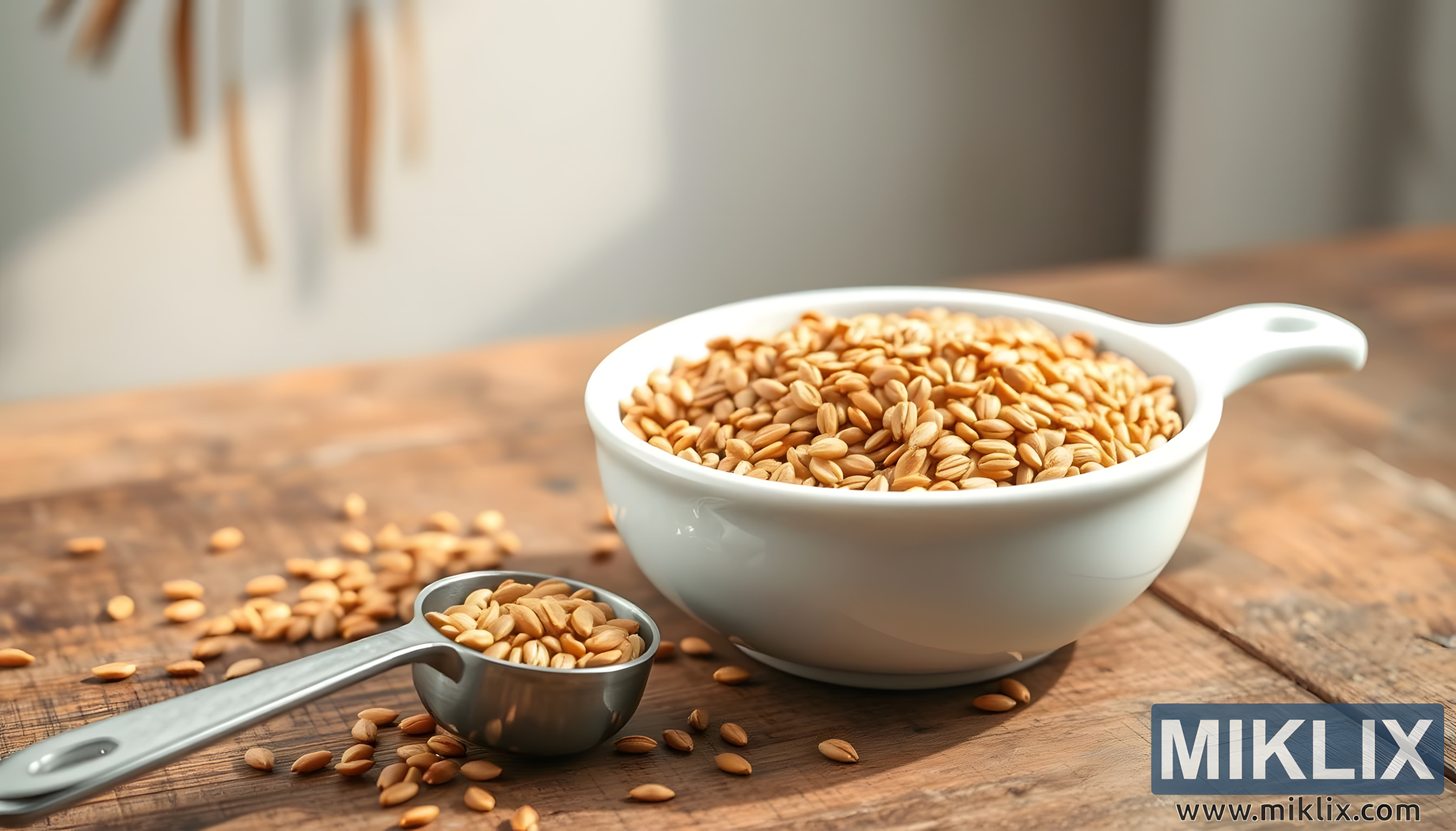 Ukukhanyisa esithombeni kuthambile futhi kungokwemvelo, kudala ukukhanya okufudumele okuvala ama-flaxseeds futhi kuthuthukise amathoni abo egolide. Izithunzi ziwela kancane etafuleni, ziboleka ukujula nobukhulu ekwakhiweni kuyilapho zilondoloza umuzwa wazo wonke wokuzola. Ukukhanya kuzwakala njengokukhanya kwelanga okugeleza efasiteleni eliseduze, okungeza ikhwalithi yasekhaya futhi kuvusa umoya wasekuseni opholile lapho umuntu eqala khona usuku ngokukhetha okunengqondo kwempilo. Lesi silungiselelo esizolile sigcizelela indima yembewu yefilakisi hhayi nje njengomthombo wokudla okunomsoco kodwa futhi njengengxenye yendlela yokuphila enkudlwana esekelwe ebhalansini, ekunakekelweni nasekuzimiseleni.