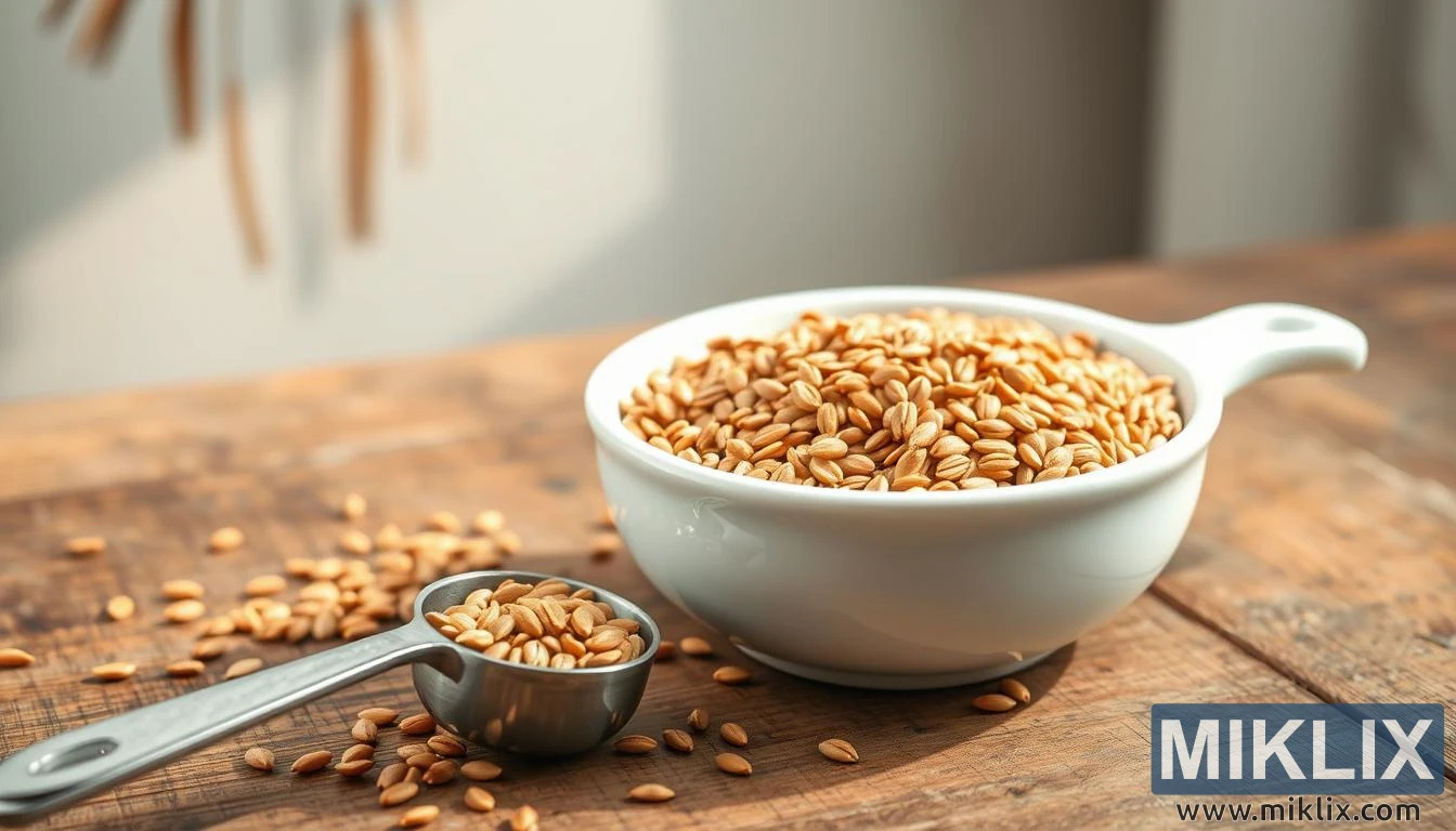 Umfanekiso wesitsha nesipuni esigcwele ama-flaxseeds etafuleni lezinkuni le-rustic, okugcizelela ukudla okunconyiwe kwansuku zonke kanye nezinzuzo zezempilo ze-flaxseeds.